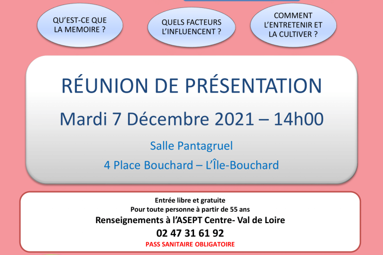Ateliers mémoire : réunion d’information le mardi 7 décembre à…
